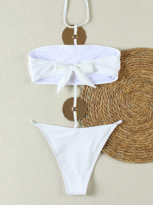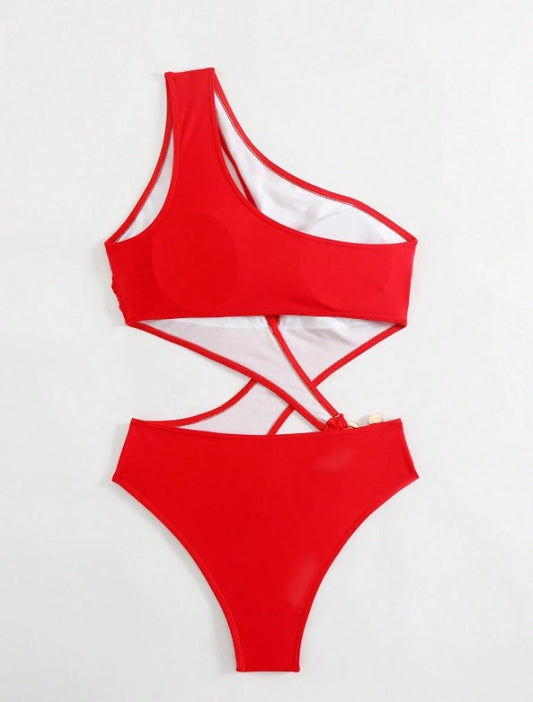 Women’s Hollow Out Metal Plate One-Piece Swimsuit
