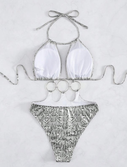 Women’s Snake Skin Pattern with Metal Inserts One-Piece Swimsuit