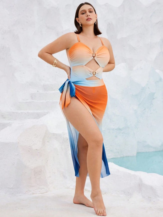 Women’s Plus Size Cutout One-Piece Swimsuit and Mesh Coverup